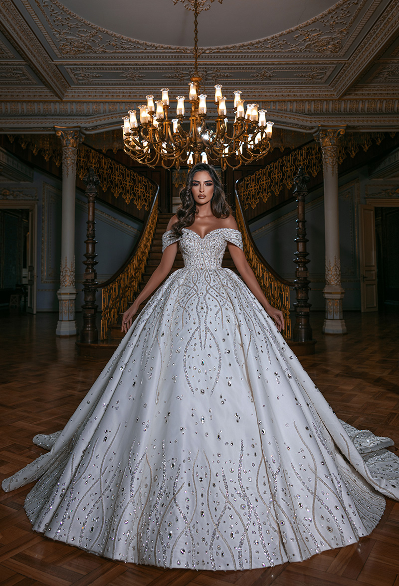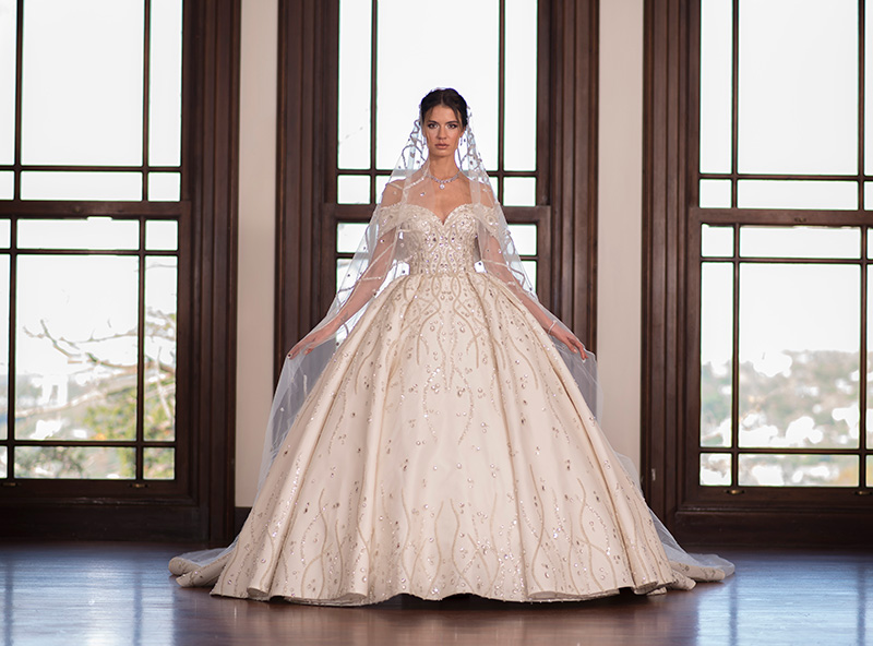 The perfect dress for your princess moment! Royal tailored elegance is present in our unique gown — its beaded lace creating a marriage of texture that’s both classy and striking. A princess-cut is bold and dramatic!
